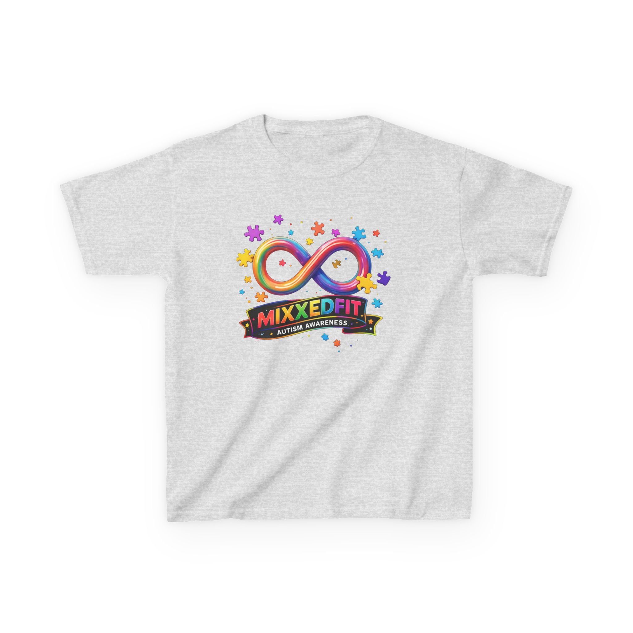 Featuring the vibrant infinity symbol surrounded by colorful puzzle pieces, this design represents the beauty, diversity, and limitless potential within the autism community. At MixxedFit®, we believe movement, music, and community should always be inclusive spaces where everyone belongs.