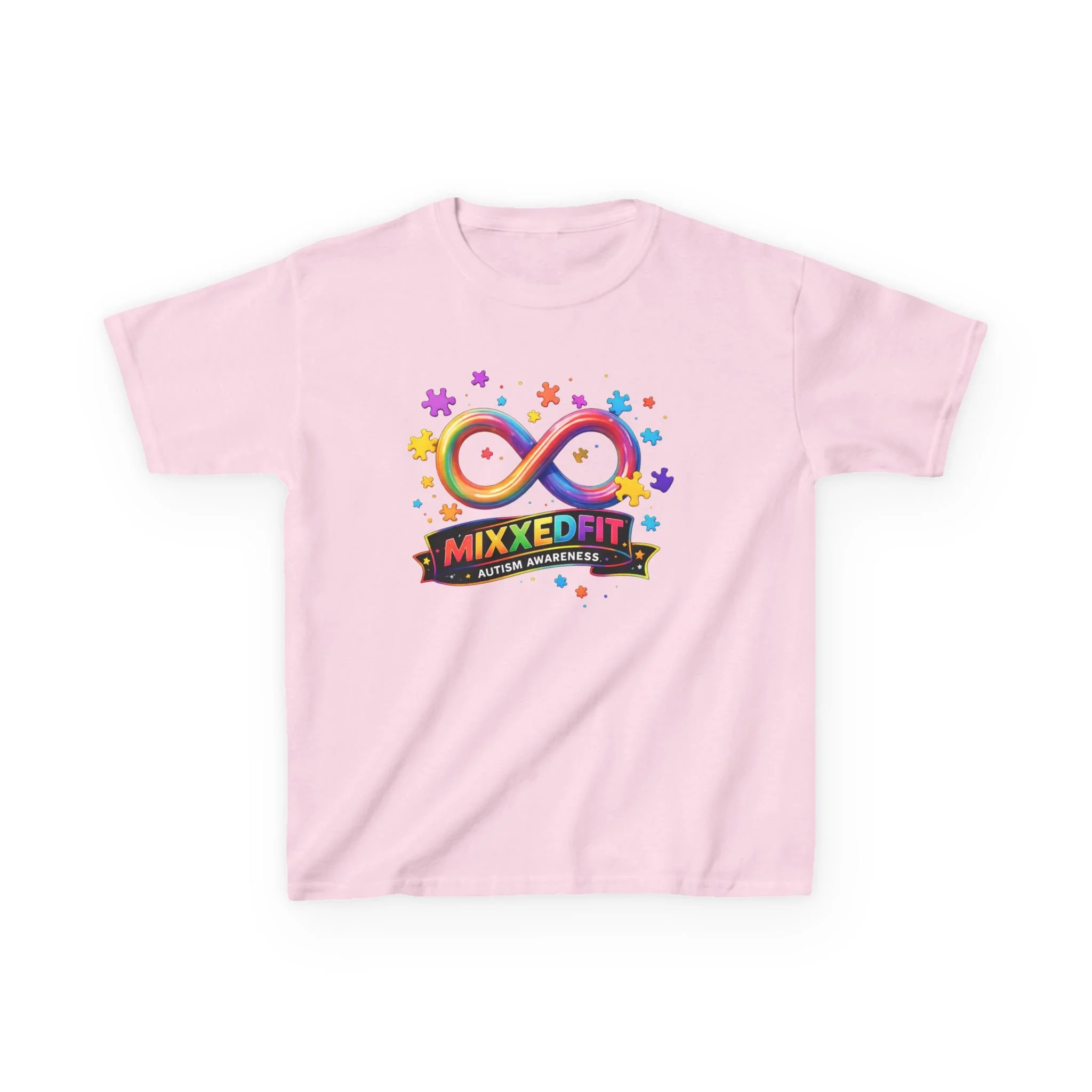 Featuring the vibrant infinity symbol surrounded by colorful puzzle pieces, this design represents the beauty, diversity, and limitless potential within the autism community. At MixxedFit®, we believe movement, music, and community should always be inclusive spaces where everyone belongs.