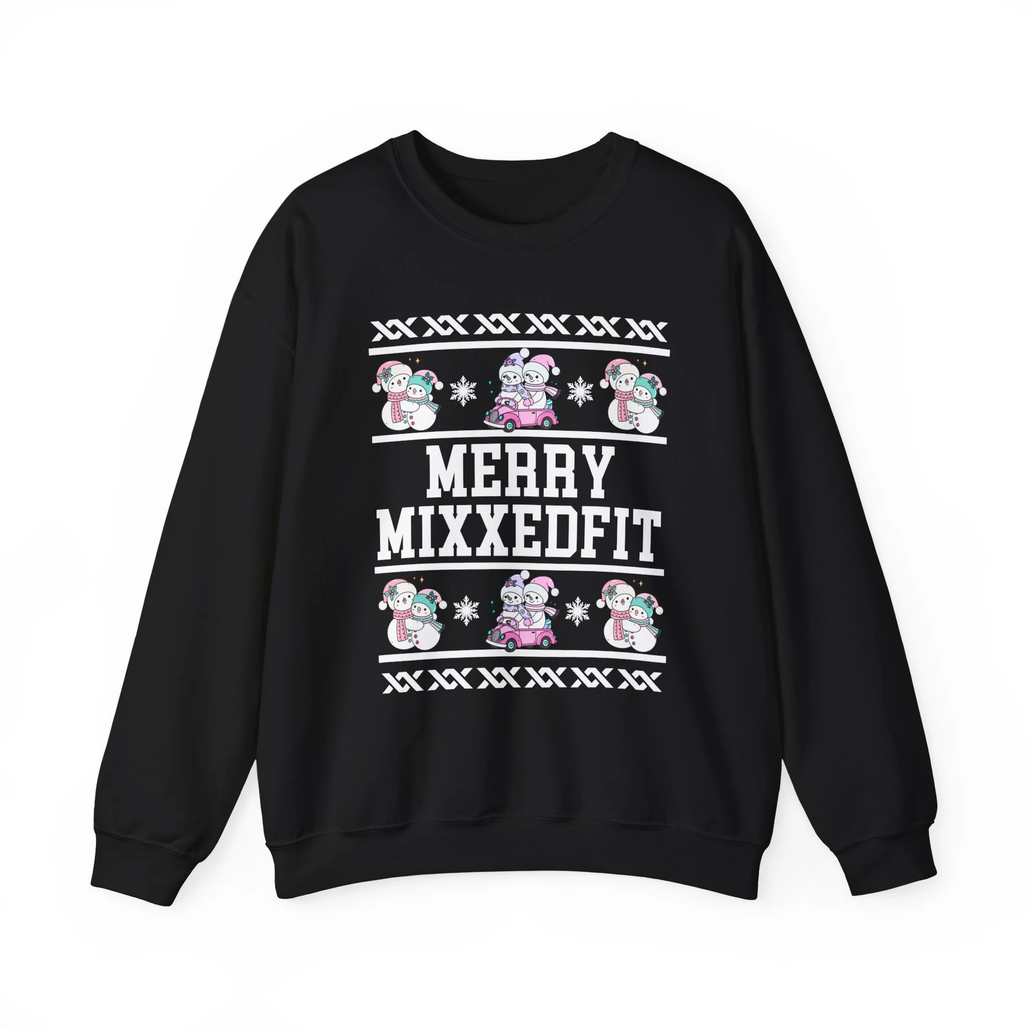 Merry MixxedFit | Pink Snowmen Crewneck - Black